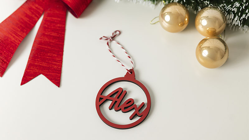 Al tratarse de un diseño centrado en el nombre, el resultado final es siempre limpio y ordenado, fácil de combinar con otros adornos sin recargar el árbol.